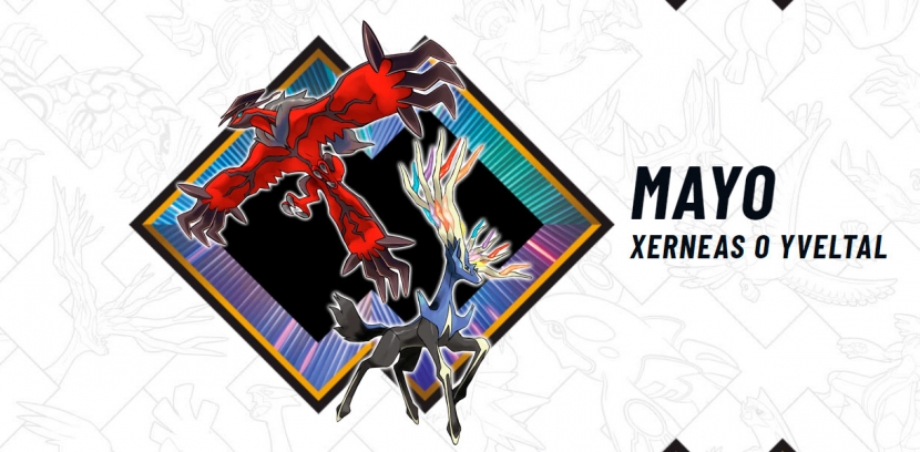 - Mayo: Xerneas, Pokémon legendario de tipo Hada, o Yveltal, Pokémon legendario de tipo Siniestro y Volador, de la región de Kalos.