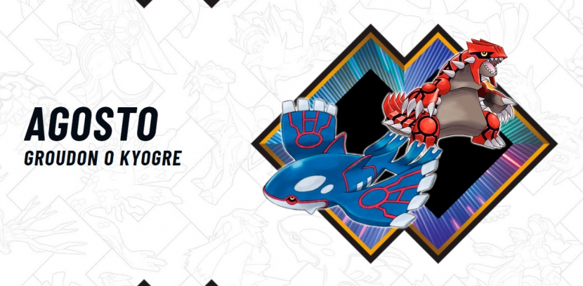 - Agosto: Groudon, Pokémon legendario de tipo Tierra, o Kyogre, Pokémon legendario de tipo Agua, de la región de Hoenn.