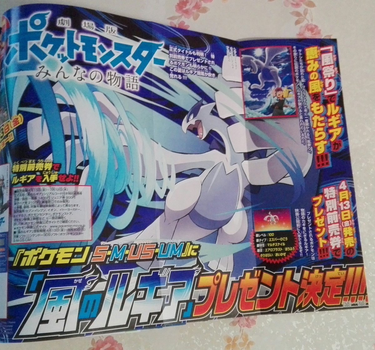 Se trata de un nuevo evento de Lugia para los juegos de Pokémon de la séptima generación que tendrá lugar en Japón. El mismo iniciará el 13 de abril y será para quienes hagan la reserva de la película Pokémon: La historia de todos.