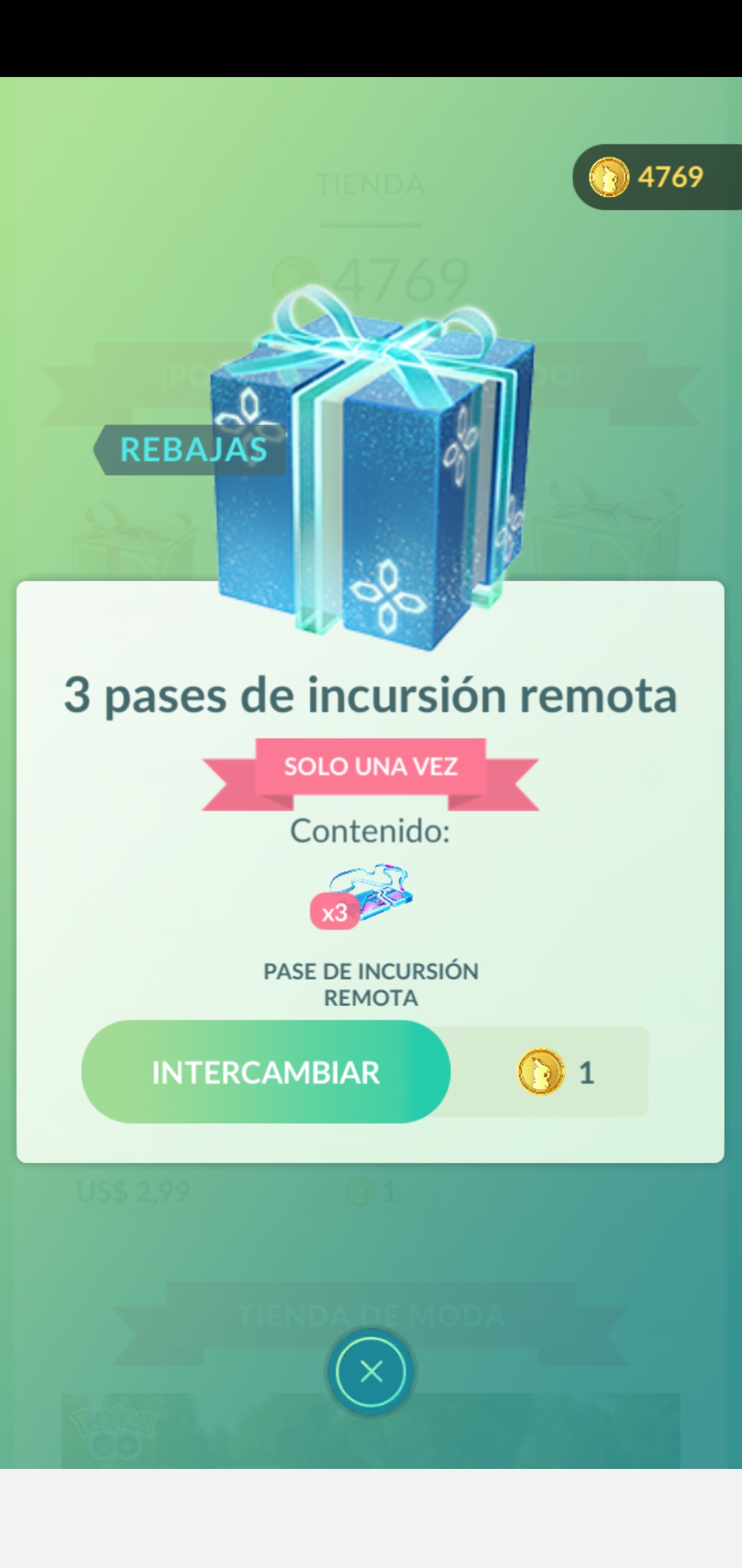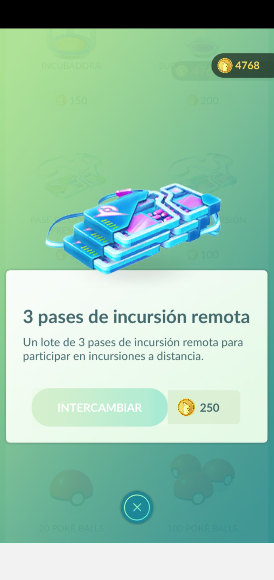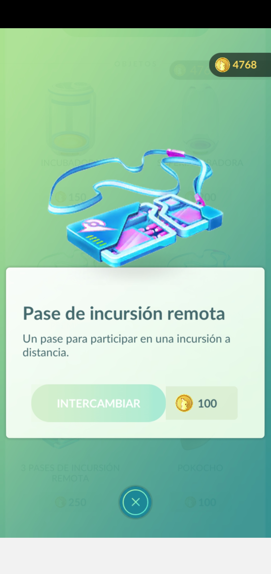 Los pases de incursión remota ya están disponibles en Pokémon GO. En la tienda hay un pack de 3 pases de incursión remota por 1 Pokémoneda (única vez). También se puede comprar 1 pase de incursión remota por 100 Pokémonedas o 3 pases de incursión remota por 250 Pokémonedas. Cada entrenador puede llevar hasta 3 pases de estos a la vez. Con este objeto los jugadores desde nivel 5 y superior podrán participar de incursiones que figuren en la pestaña «Cerca» aunque no estén en el lugar físicamente. También podrán participar de incursiones en cualquier gimnasio donde hayan dejado un Pokémon.