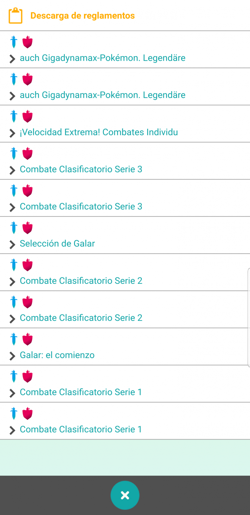 - Y finalmente en Descarga de reglamentos podrás revisar los reglamentos que están disponibles para descargar actualmente en cada juego de Pokémon.