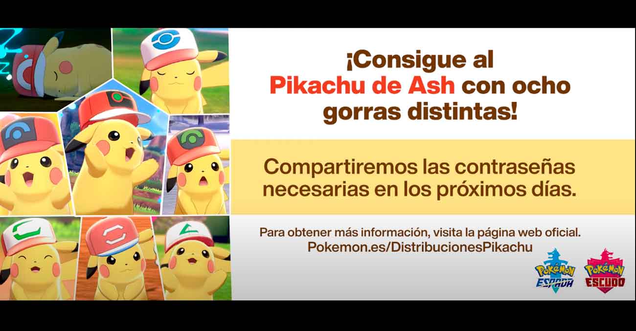 Entre todas las novedades que se publicaron hoy, también se anunció la distribución del Pikachu de Ash con distintas gorras para Pokémon Espada y Escudo.