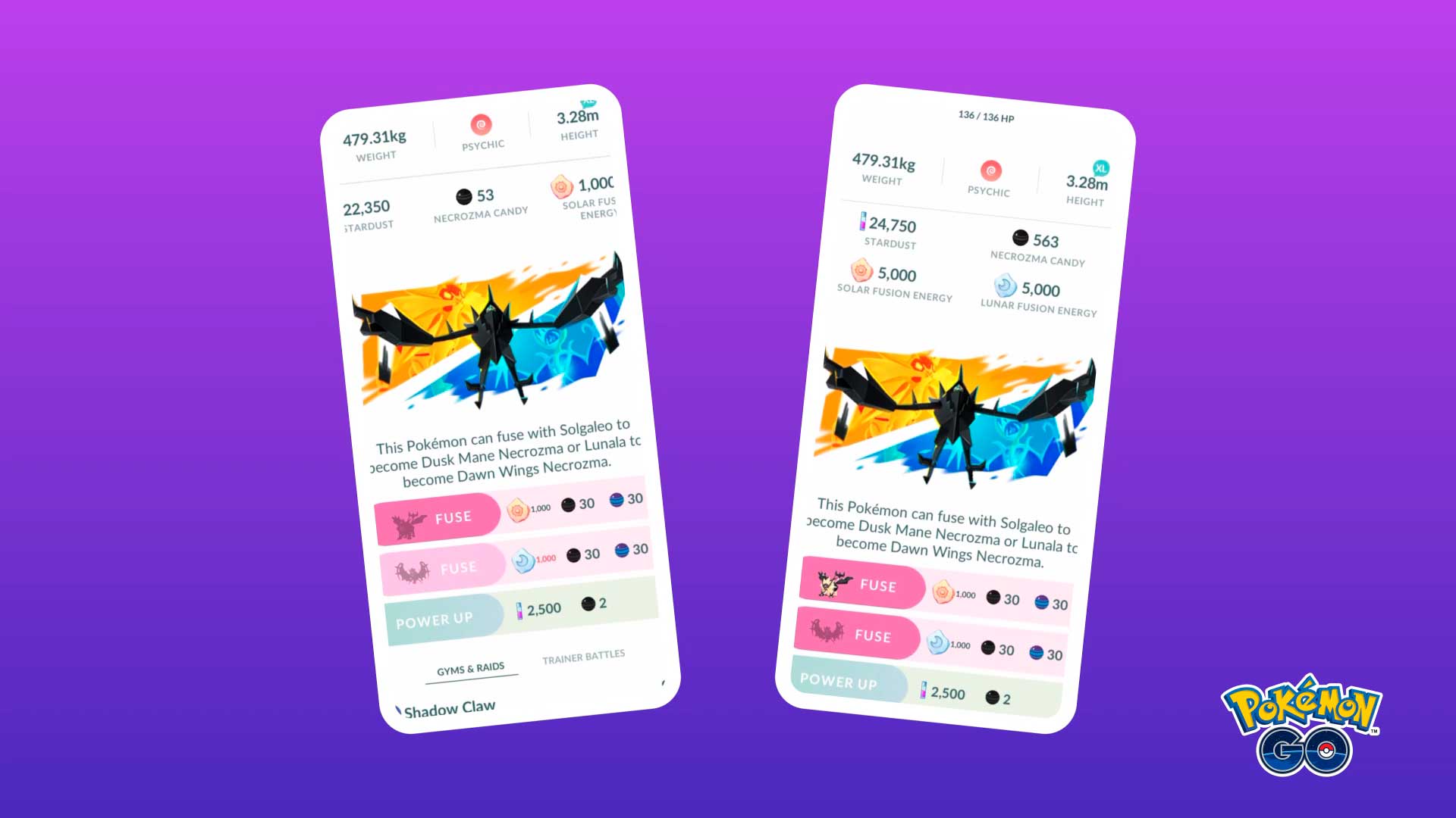 Para conseguir a estos Pokémon Legendarios, los jugadores deberán usar la Fusión Pokémon. Esta mecánica permite acumular energía para fusionar a Necrozma con Solgaleo (Necrozma Melena Crepuscular) o con Lunala (Necrozma Alas del Alba). Debajo pueden ver el proceso de fusión paso a paso.