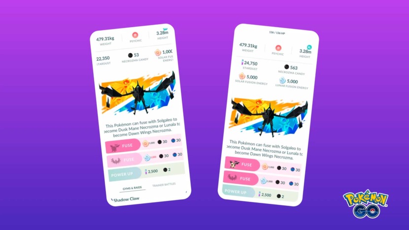 - Necrozma Alas del Alba tendrá el ataque destacado Rayo Umbrío (Moongeist Beam) (135 de daño en combates de entrenador y 230 de daño en Gimnasios e incursiones).