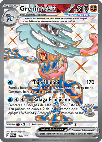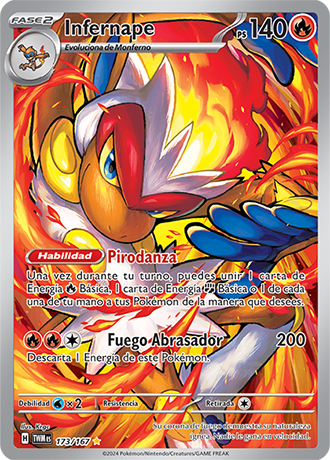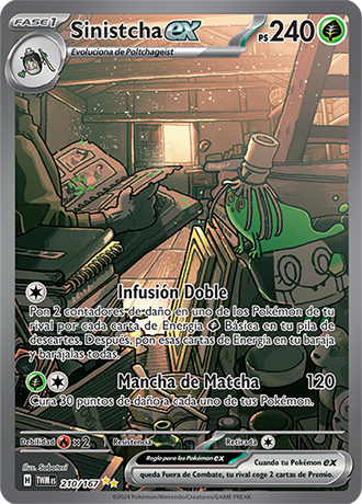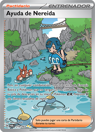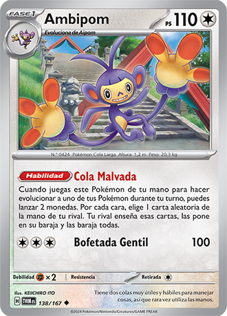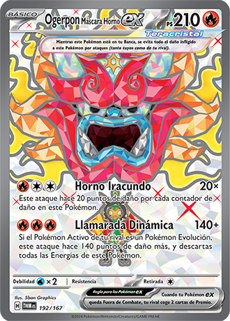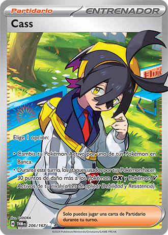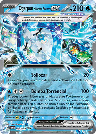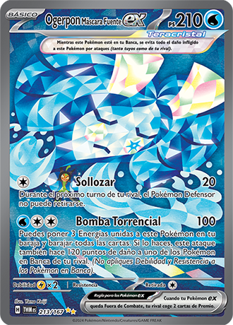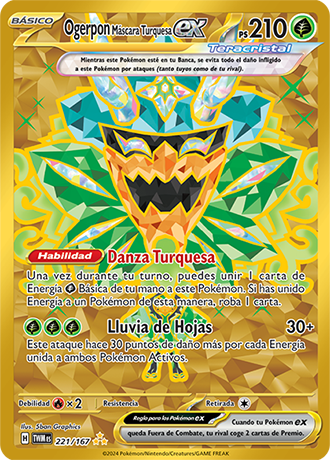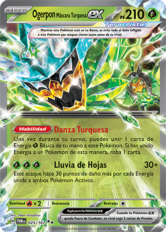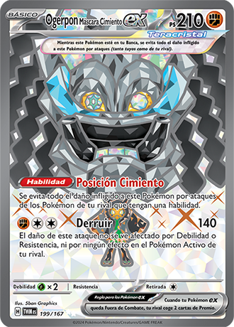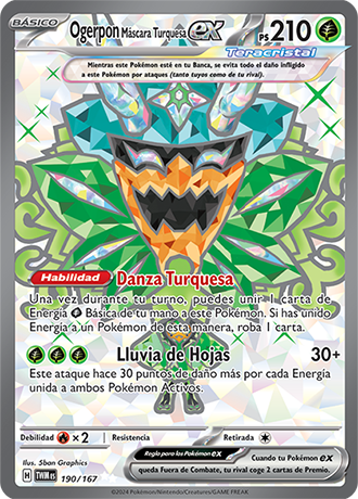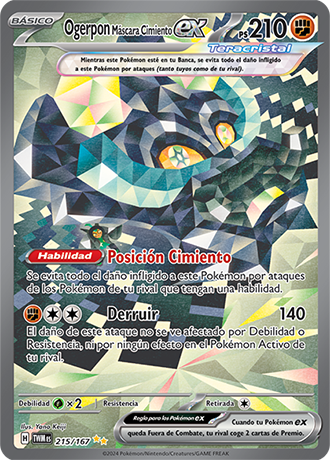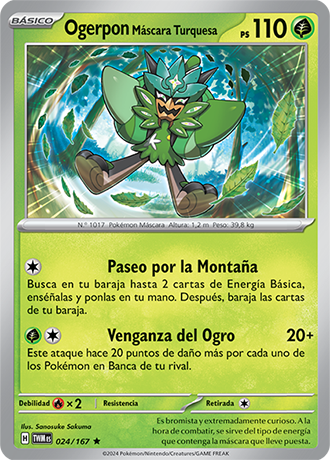 Como bien mencionamos anteriormente, el set está compuesto por 226 cartas (167 cartas comunes y 59 secretas). Incluye a Ogerpon y todas sus formas. A continuación pueden ver todas las cartas en español.