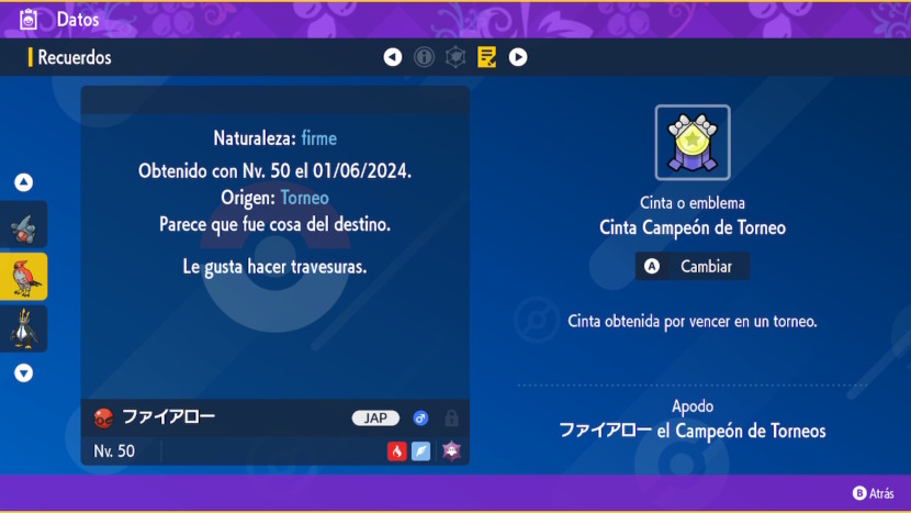Este Talonflame está basado en el que usó Kaito Arii para ganar el Campeonato de Japón en 2023. Es un Pokémon competitivo ya que tiene 31 IVs en cada estadistica. El código es F1ARR0W23MASTER y estará disponible para reclamar hasta el 2 de junio de 2024 a las 11:59 (GMT-3).