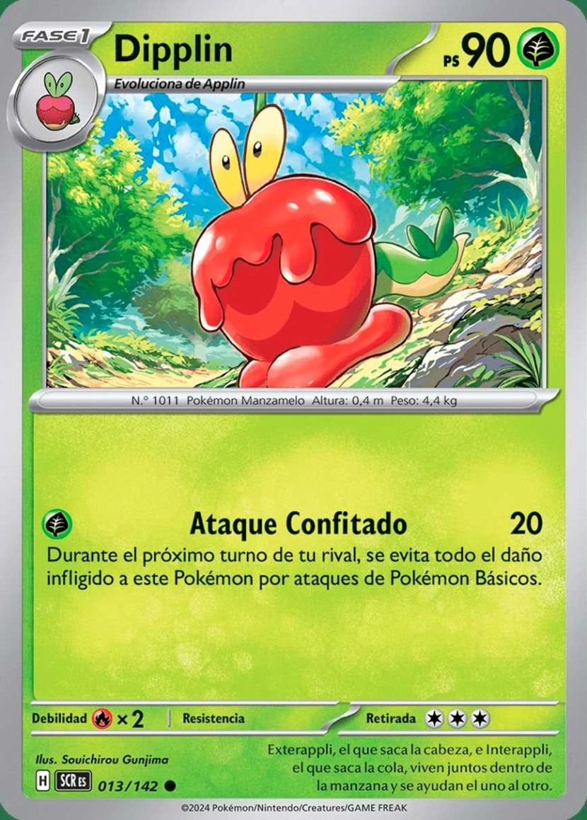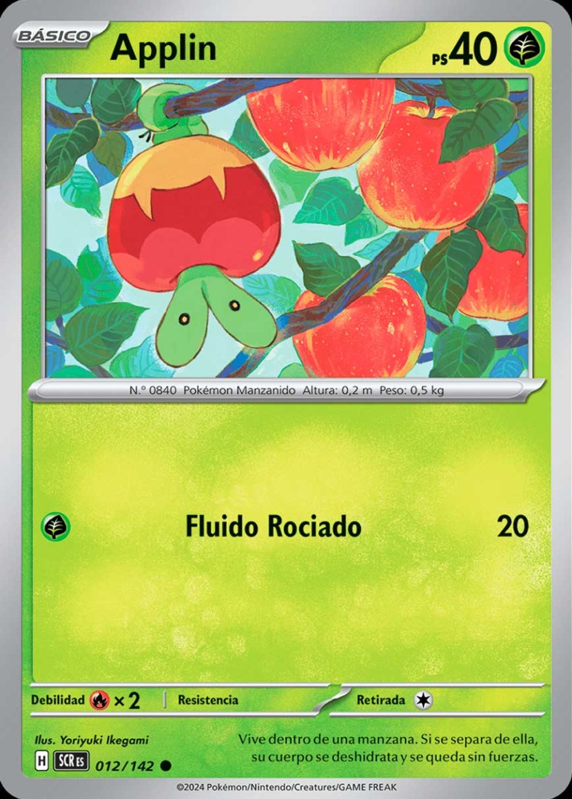 Entre las cartas reveladas, se encuentra Aroa, Brie, Celebi y las familias evolutivas de Applin, Toedscool, Gulpin, Impidimp, Terapagos ex y otros más.