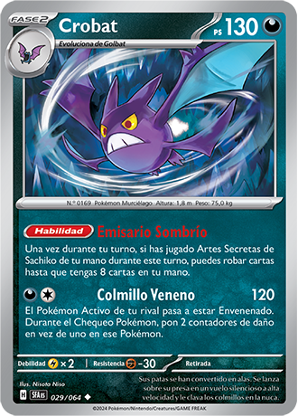 La expansión Fábula Sombría es un set de cartas de Pokémon TCG con ilustraciones inspiradas en el estilo xilográfico japonés. Estará compuesto por más de 90 Cartas de diversos Pokémon, incluyendo a Pecharunt, Fezandipiti, Okidogi y Munkidori. Además, las cartas holográficas tendrán un nuevo estilo único en torno a la ilustración de la carta.