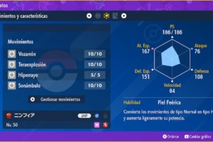- Movimientos: Vozarrón (Hyper Voice), Teraexplosión (Tera Blast), Hiperrayo (Hyper Beam) y Sonámbulo (Sleep Talk)