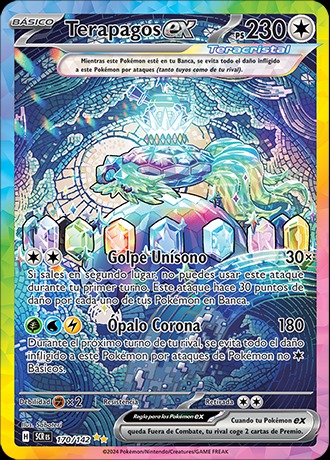 La expansión de Pokémon TCG o JCC, Escarlata y Púrpura-Corona Astral (Stellar Crown en inglés) ya está disponible en occidente. Este set está compuesto por 175 cartas que incluyen Pokémon ex y la inclusión de Pokémon con Teratipo Astral, además de Pokémon del DLC El disco índigo de Pokémon Escarlata y Púrpura.