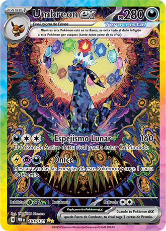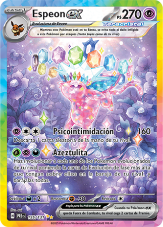 El set de expansión de Escarlata y Púrpura—Evoluciones Prismáticas (Scarlet & Violet—Prismatic Evolutions en inglés) de Pokémon TCG o JCC Pokémon ya está disponible en las tiendas de todo el mundo. La expansión está centrada en Eevee y sus evoluciones, que también incluyen el Teratipo Astral. En esta sección les enseñaremos todas las cartas.
