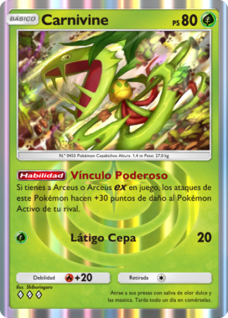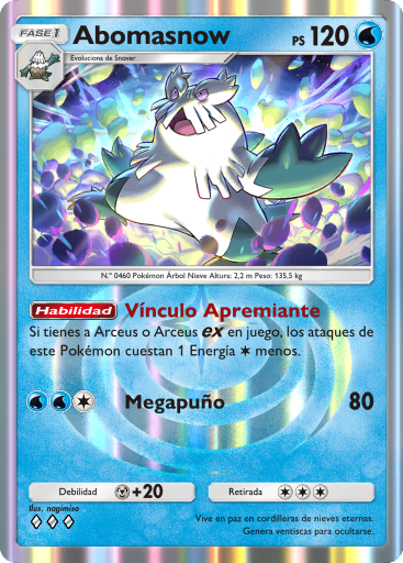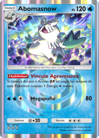 La nueva expansión está compuesta por 96 cartas (75 comunes y 21 secretas) y tiene como protagonista principal al Pokémon Legendario, Arceus. En este sobre podrán encontrar a Arceus, ex, Glaceon ex, Leafeon ex y otros Pokémon ex.