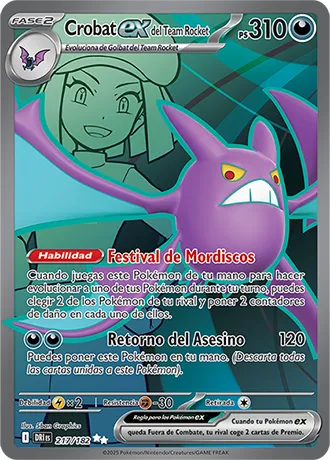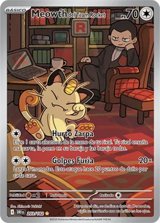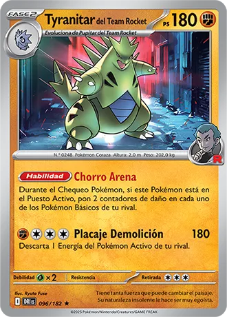 La expansión Escarlata y Purpura-Rivales Predestinados (Destined Rivals en inglés) de Pokémon TCG o JCC Pokémon ya está disponible en las tiendas de todo el mundo. El set está enfocado en los Pokémon del Team Rocket con 244 cartas entre las normales y secretas. En esta sección les enseñaremos todas las cartas del set en español de España.