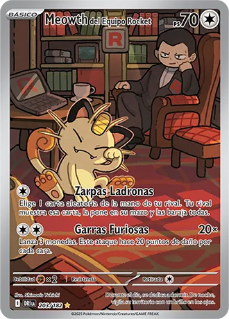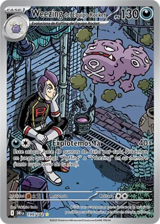 La expansión Escarlata y Purpura-Rivales Predestinados (Destined Rivals en inglés) de Pokémon TCG o JCC Pokémon ya está disponible en las tiendas de todo el mundo. El set está enfocado en los Pokémon del Team Rocket con 244 cartas entre las normales y secretas. En esta sección les enseñaremos todas las cartas del set en español de Latinoamérica.