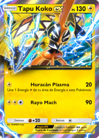 Para empezar, han añadido la carta Promo-A #84 de Tapu Koko ex con el movimiento Huracán Plasma (Plasma Hurricane) y Rayo Mach (Mach Bolt) que se puede conseguir cumpliendo la misión del pase premium que consiste en iniciar sesión.