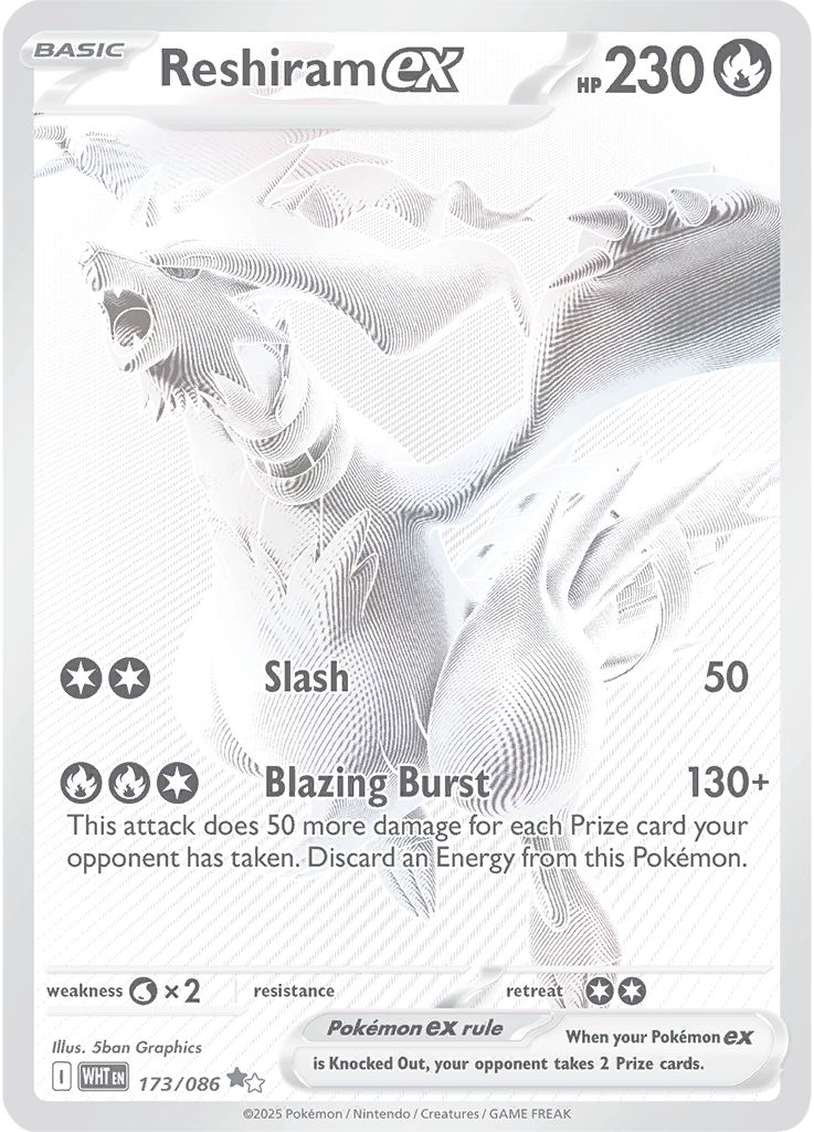 Se han revelado las cartas principales y secretas de la expansión de Pokémon TCG Scarlet & Violet White Flare. El set saldrá a la venta el 18 de julio de 2025 en las tiendas de todo el mundo, contando con 172 cartas (86 principales y 86 secretas) de Pokémon y personajes originarios de la región Unova. Además introduce las cartas de rareza Rara Negro Blanco monocromáticas.