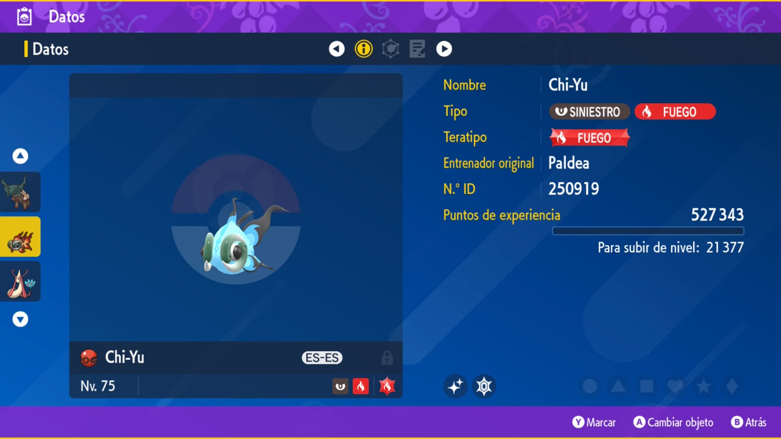Ya se puede reclamar vía Regalo Misterioso al Pokémon legendario, Chi-Yu Shiny en Pokémon Escarlata y Púrpura. Esta distribución es el beneficio de haber completado con éxito el cuarto evento de Teraincursión de 5 estrellas de las leyendas funestas con 1.891.539 victorias.