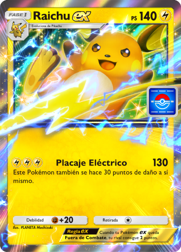 La carta promocionada principal es Raichu ex con el movimientos Placaje Eléctrico (Happy Puinch) que necesita tres energías Rayo.