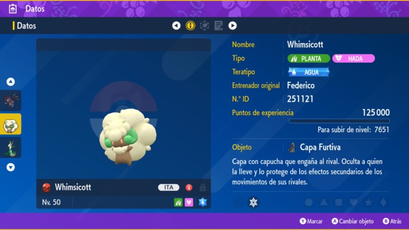 Distribución de Whimsicott para Pokémon Escarlata Y Púrpura