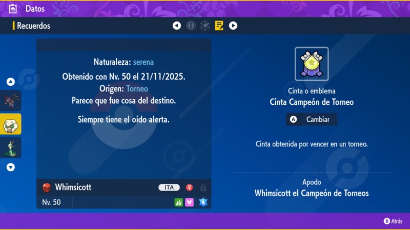 Durante la transmisión de la competencia VGC de Pokémon Escarlata y Púrpura revelarán un código de descarga para usar vía Regalo Misterioso y recibir al Whimsicott de Federico Camporesi.