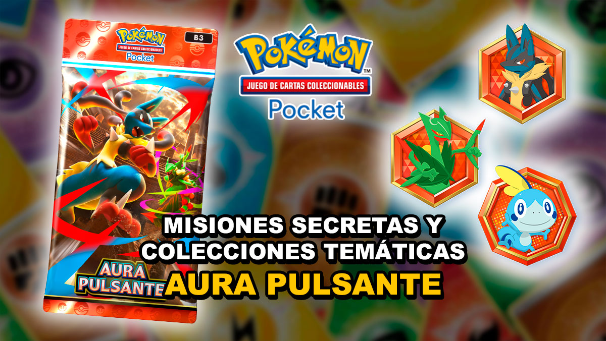 En esta sección encontrarán todas las misiones secretas y colecciones temáticas de la expansión «Aura Pulsante» (B3) (Pulsing Aura en inglés) para Pokémon TCG Pocket o JCC Pokémon Pocket. Les contamos todos los requisitos para completar las misiones y recompensas que se pueden conseguir.