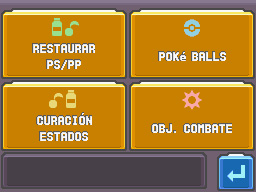 * Uso para batalla - Sostiene Objetos que pueden usarse en la batalla como Cuerda Huida, Ataque X, etc.