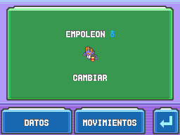 Cuando seleccionas un Pokémon, te muestra el Pokémon que has seleccionado y te pide si deseas ver sus detalles o simplemente lo mandas inmediatamente a la batalla. Te dara también como de costumbre la opción para volver atrás.