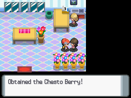 Justo antes de llegar a la Ciudad de Hearthome esta la Casa del Amo de la Baya. Como muchos otros en Sinnoh, él te dará alegremente una nueva baya cada día, así que puedes volver otra vez. |