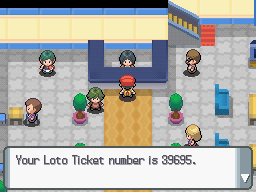 En Ciudad Jubileo, donde está la estación de TV, en la recepción de la estación de TV está la Lotería Pokémon. Cada día los Números cambian. Yendo al final, conseguirás los premios si tus Pokémon coinciden con cualquiera de los Números en el orden. Debajo está la lista de premios: