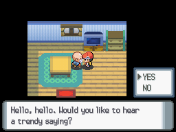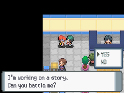 Saliendo del lugar donde nos dicen el número de la lotería, a la izquierda hay un entrenador. Este entrenador siempre te preguntará si deseas una batalla. El entrenador cambia todos los días y sus Pokémon también cambian todos los días. Estas batallas también aparecerán en los informes de la televisión. |