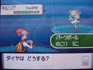 Después de que haz seleccionado los 6 Pokémon que quieres transferir en el menú antes de cargar tu juego, ve a Parque Compi en Ruta 221 y te darán unas Parque Balls (Park Balls). Estas Parque Balls (Park Balls) tienen un 100% probabilidad de captura y una vez que encuentres a tu Pokémon, ni siquiera necesitas correr para capturarlo.