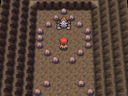 Regigigas, el líder de los Regis que se decía que reunía los continentes. Regigigas simplemente reside en el templo al norte de Ciudad Puntaneva (Snowpoint City), en lo profundo de las ruinas, él está dormido... hasta que transfieras Regirock, Regice y Registeel de tus juegos de GBA. Con los tres Pokémon en tu equipo, podrás despertar a Regigigas. Advertencia es un Pokémon muy poderoso, esta en Nv. 70. Intenta incapacitarlo pero no derrotarlo dentro de los primeros turnos.