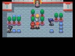 Entrando a un cuarto con los 5 entrenadores, podrás hablar con ellos. Esto te permitirá escogerlos. Sin embargo no tienen los Pokémon que tenían cuando nos los habiamos encontrado por primera vez, ahora tienen muchos Pokémon algunos de los cuales tienen multiples movesets. Debajo verás los Pokémon con los que pueden luchar si los seleccionas: