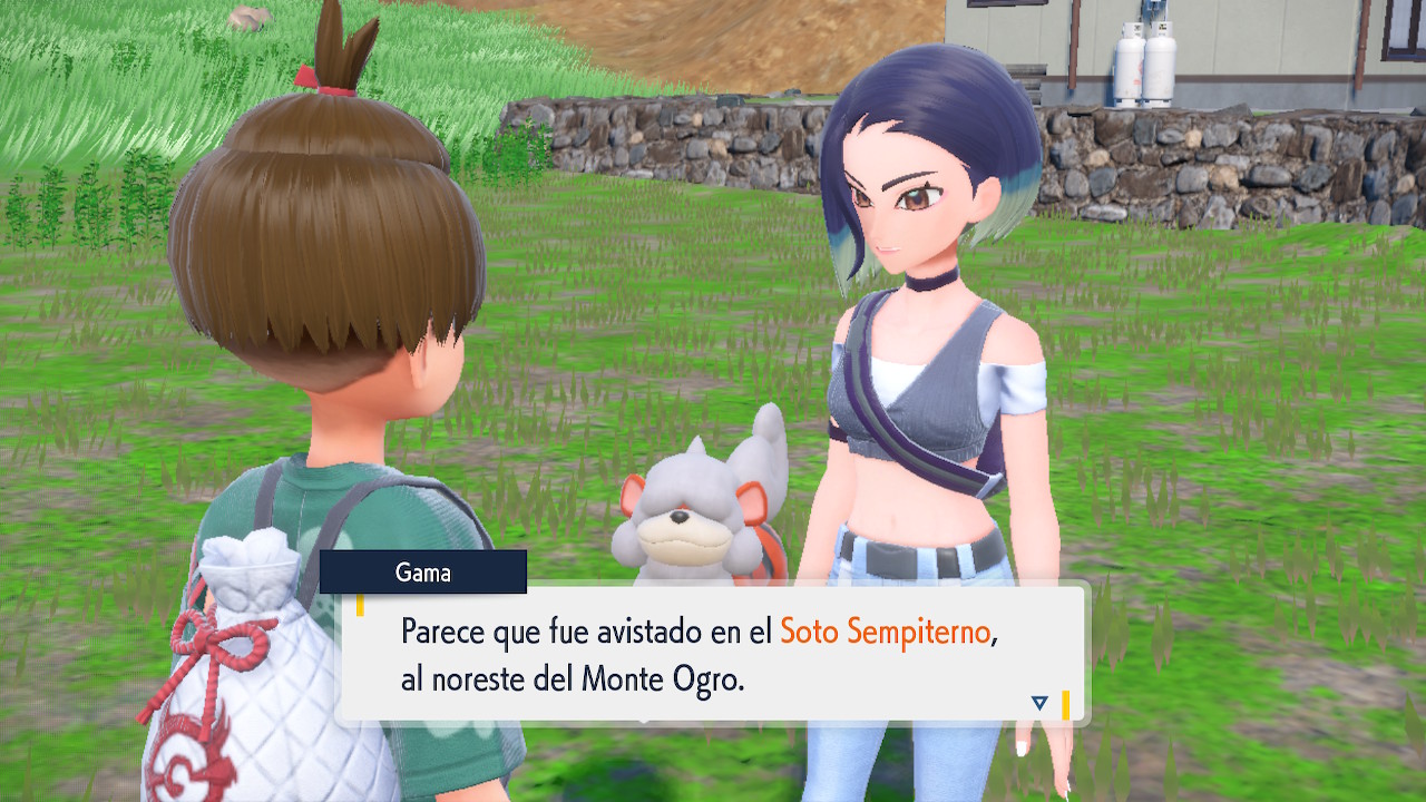 Cuando llegues verás a Gama tomando fotografías a un Pokémon. Habla con ella y te explicará que Ursaluna aparecerá en noches de niebla. Mientras tanto aparecerá un Ariados que los atacará, así que deberás derrotarlo.