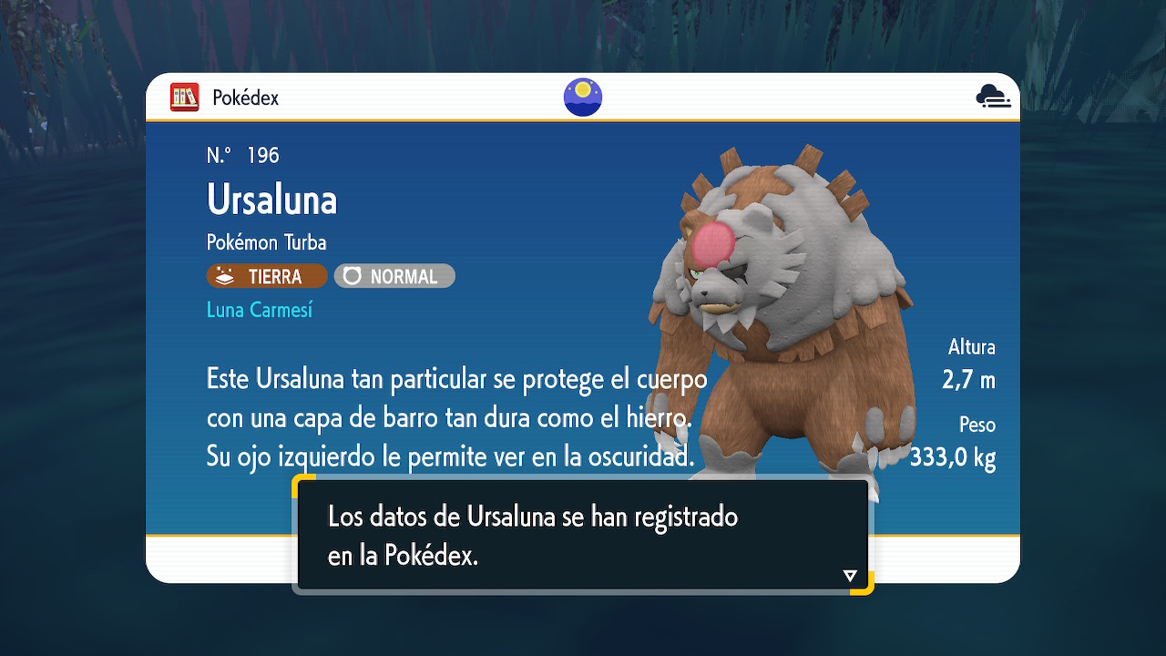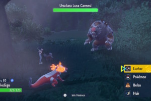 Cuando termines, Gama cargará las fotos en el Pokéscopio y sonará la alarma con la ubicación de Ursaluna Luna Carmesí. Al ir al sitio deberás luchar contra el Pokémon para poder capturarlo.
