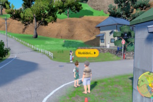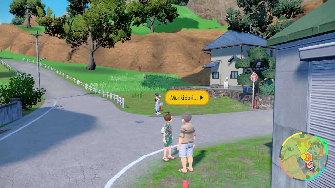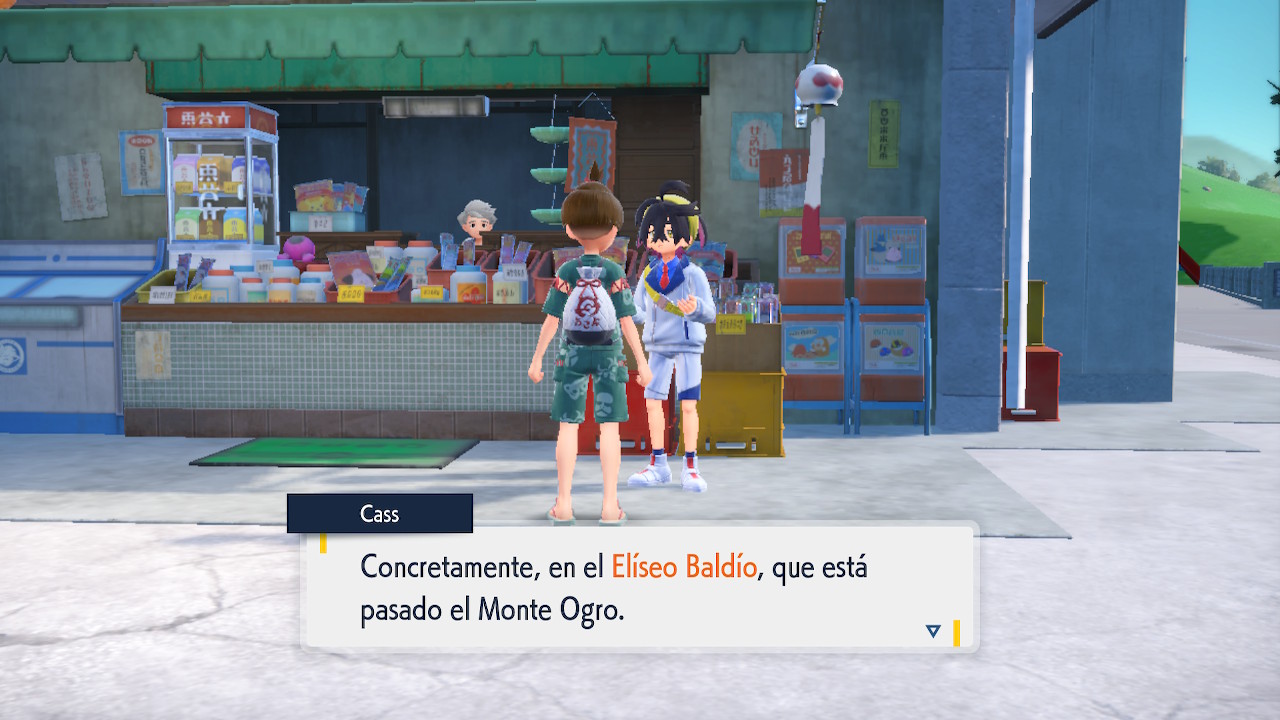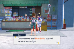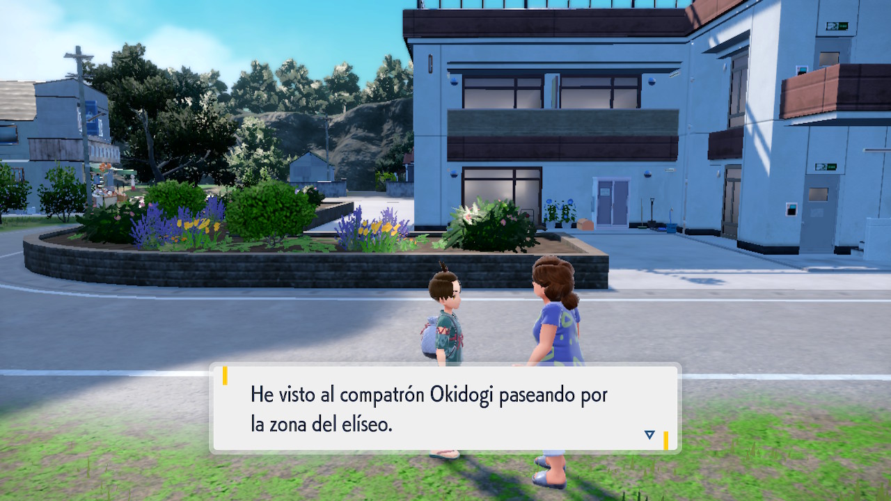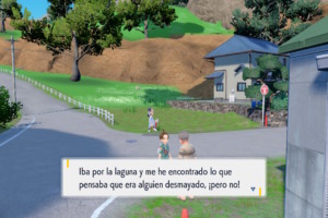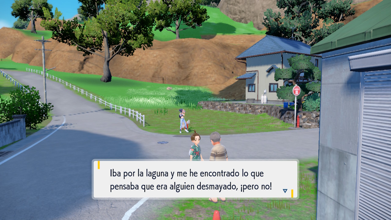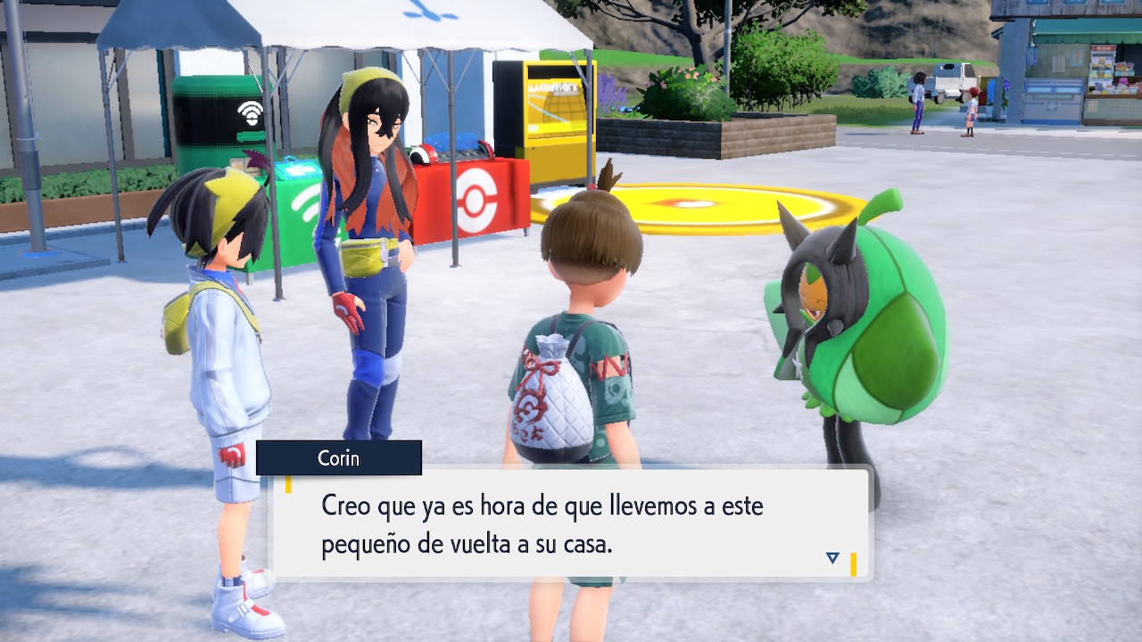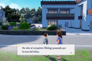 Ogerepon tiene miedo de entrar a la villa así que deberás ingresar y recabar información del paradero de los compatrones hablando con los vecinos del lugar.