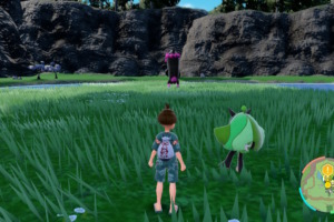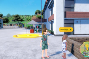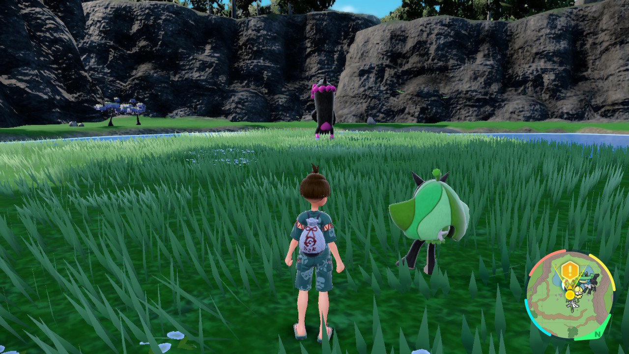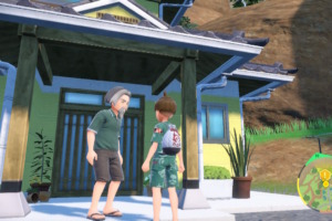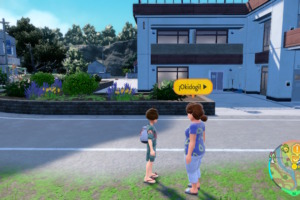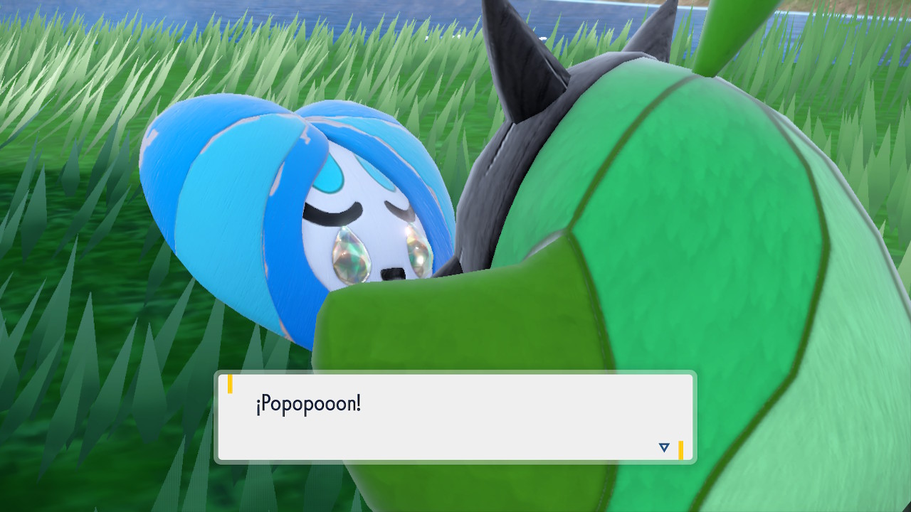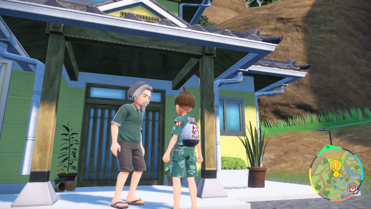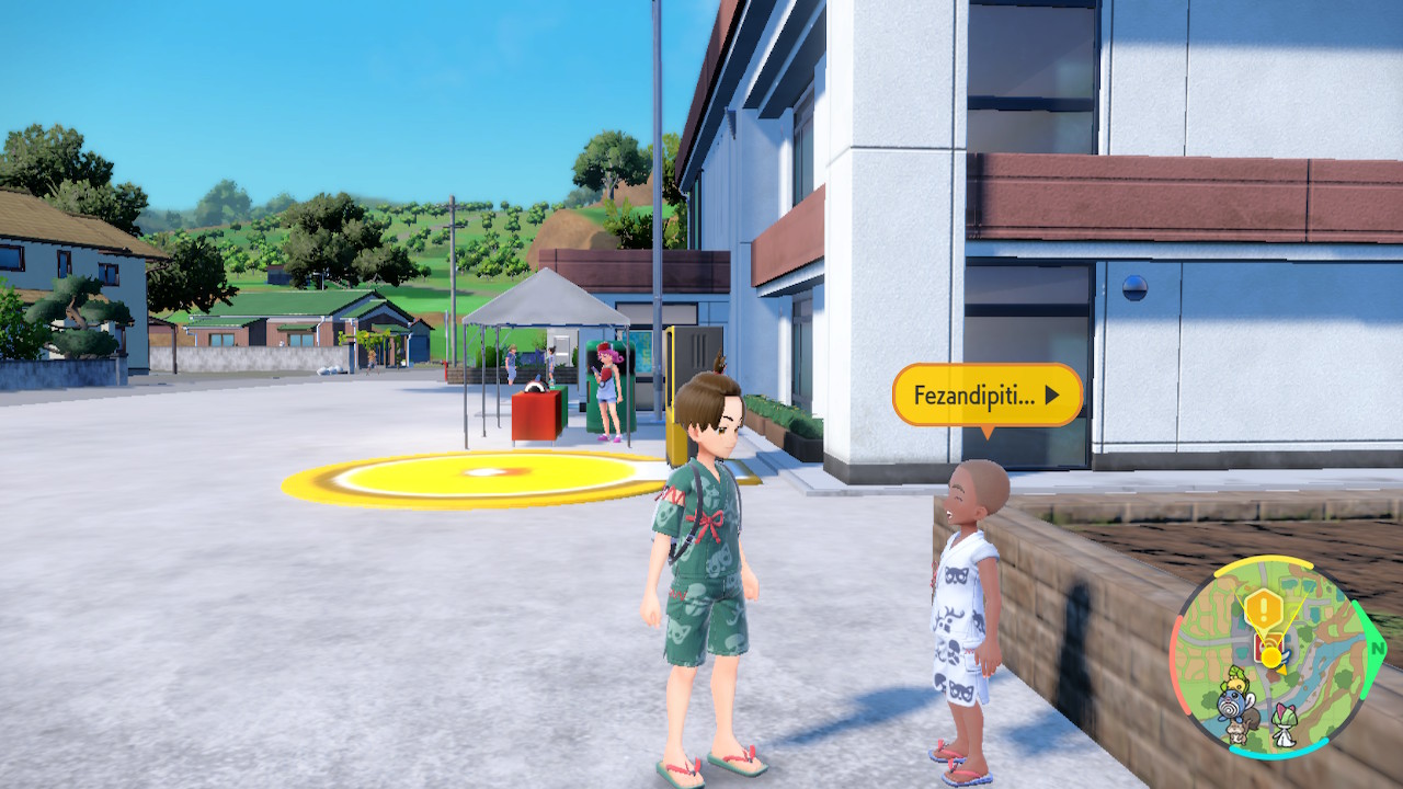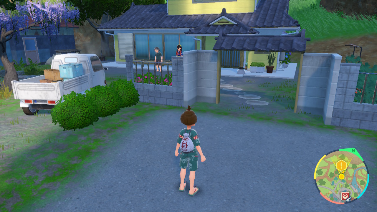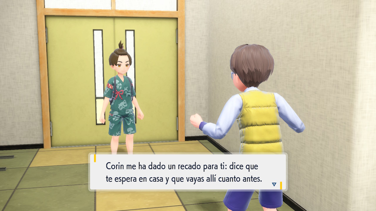 Ogerepon tiene miedo de entrar a la villa así que deberás ingresar y recabar información del paradero de los compatrones hablando con los vecinos del lugar.