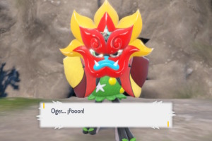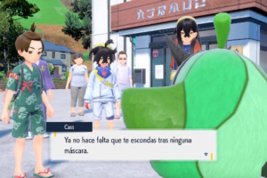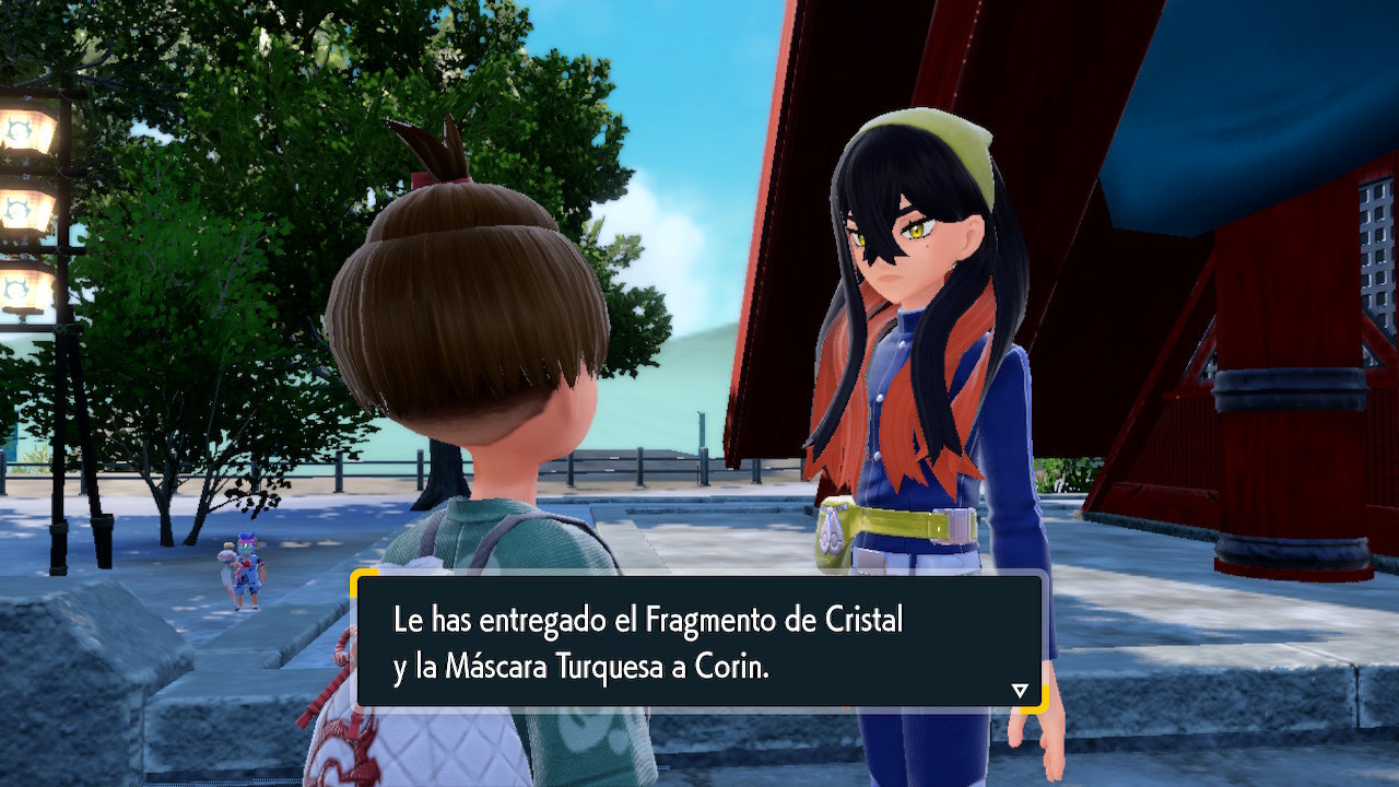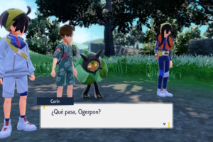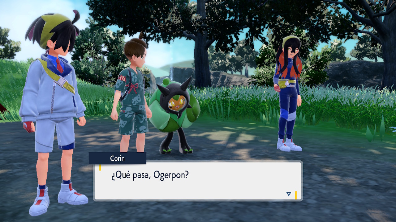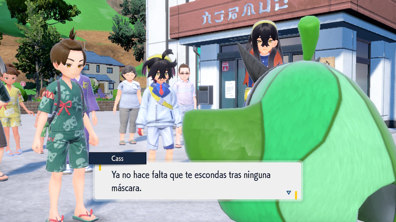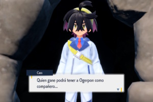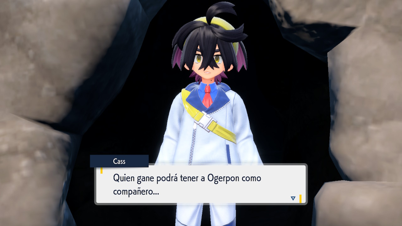 Cuando hables con Cass en el Parque de los compatrones, habrá una escena donde Cass les reclamará a ti y a Corin por haberle ocultado la verdad sobre Ogerpon. Así que para devolverte la máscara, primero deberás derrotarlo en un combate.