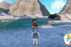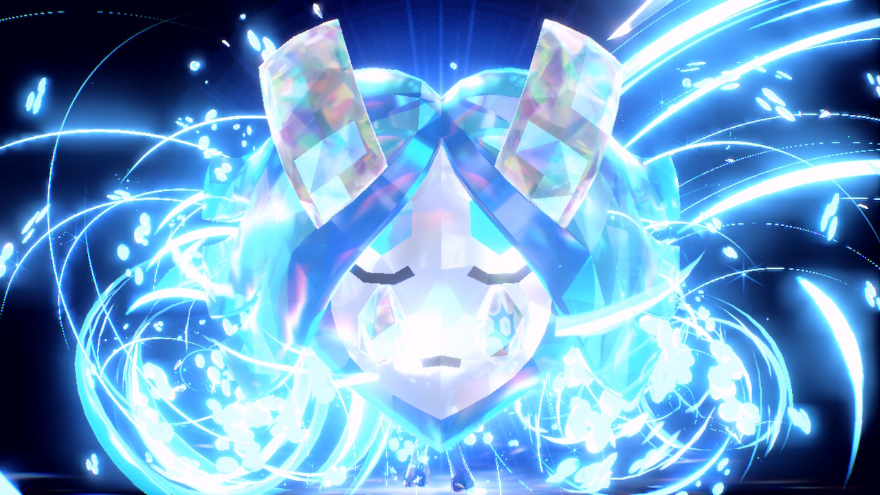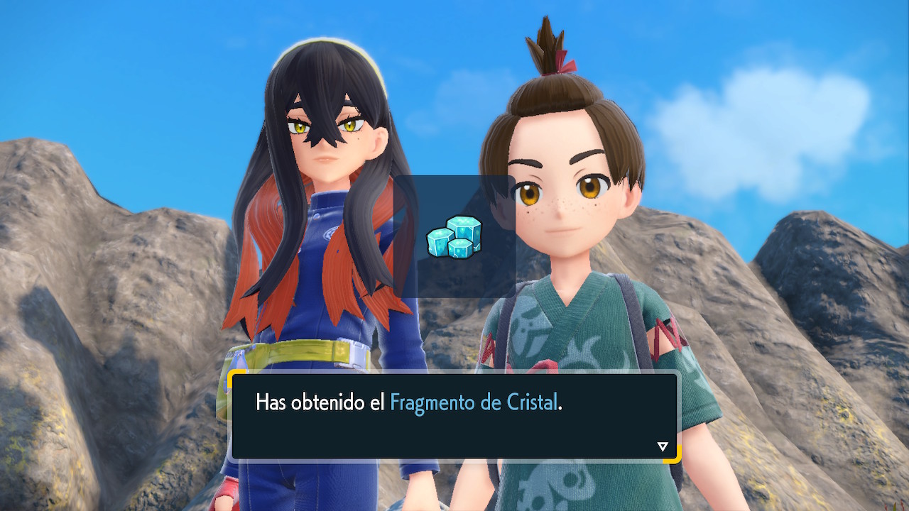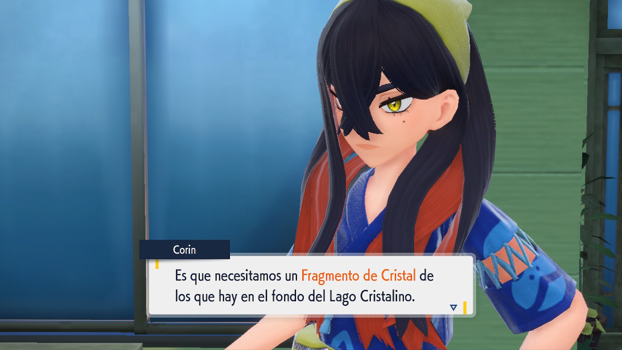 A continuación verás otra secuencia donde recogen el fragmento y luego aparecerá la profesora Brie. Ella dirá que está haciendo una investigación sobre las propiedades del agua del lago, ya que el agua del Lago Cristalino posee una longitud de onda idéntica a la de la energía Teracristal, y si logra descifrarlo, podrían recrear de manera estable el fenómeno de la teracristalización fuera de Paldea.