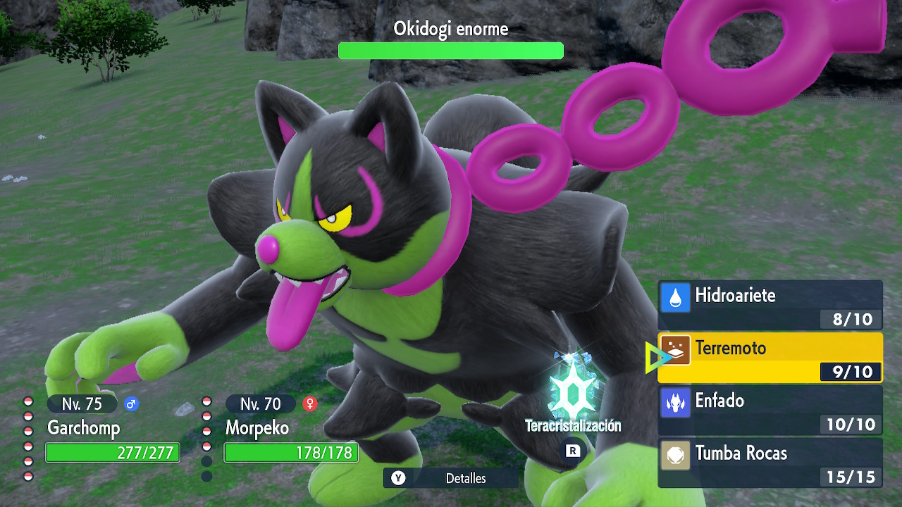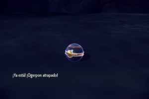 Una vez que lo derrotes podrás capturarlo de un solo intento, ya que al tratarse de un Pokémon teracristalizado, solo debes seleccionar Atrapar. Además, Ogerpon te entregará sus Máscaras.
