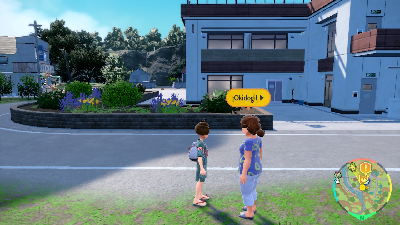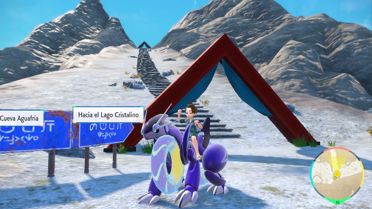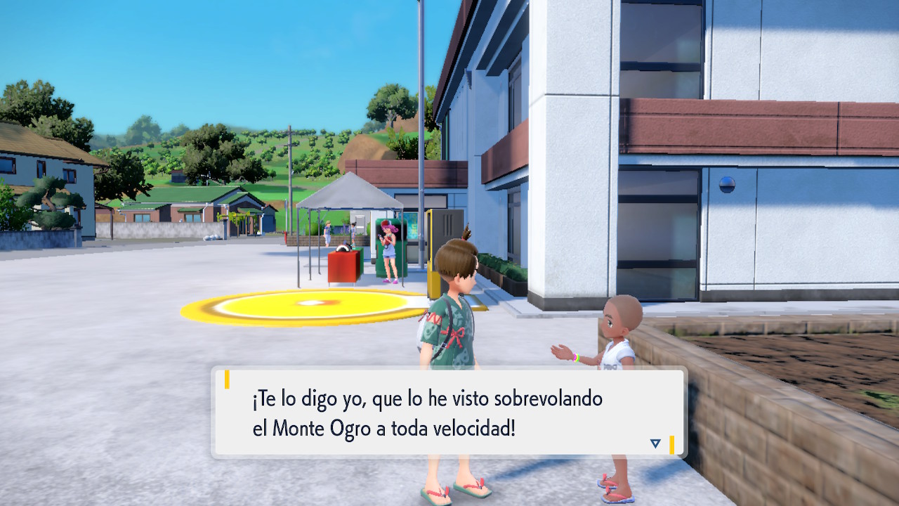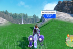 Ahora deberás dirigirte a Villa Versui a recabar información sobre Los compatrones, con el fin recuperar las máscaras robadas de Ogerpon. Vuela hasta el albergue y habrá una secuencia donde llegarán con Ogerpon hasta el puente que une la villa con la Senda Jarana (Reveler’s Road).