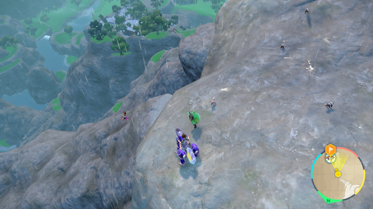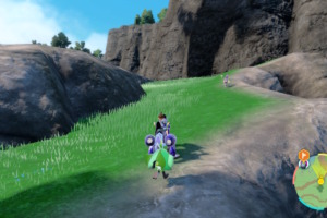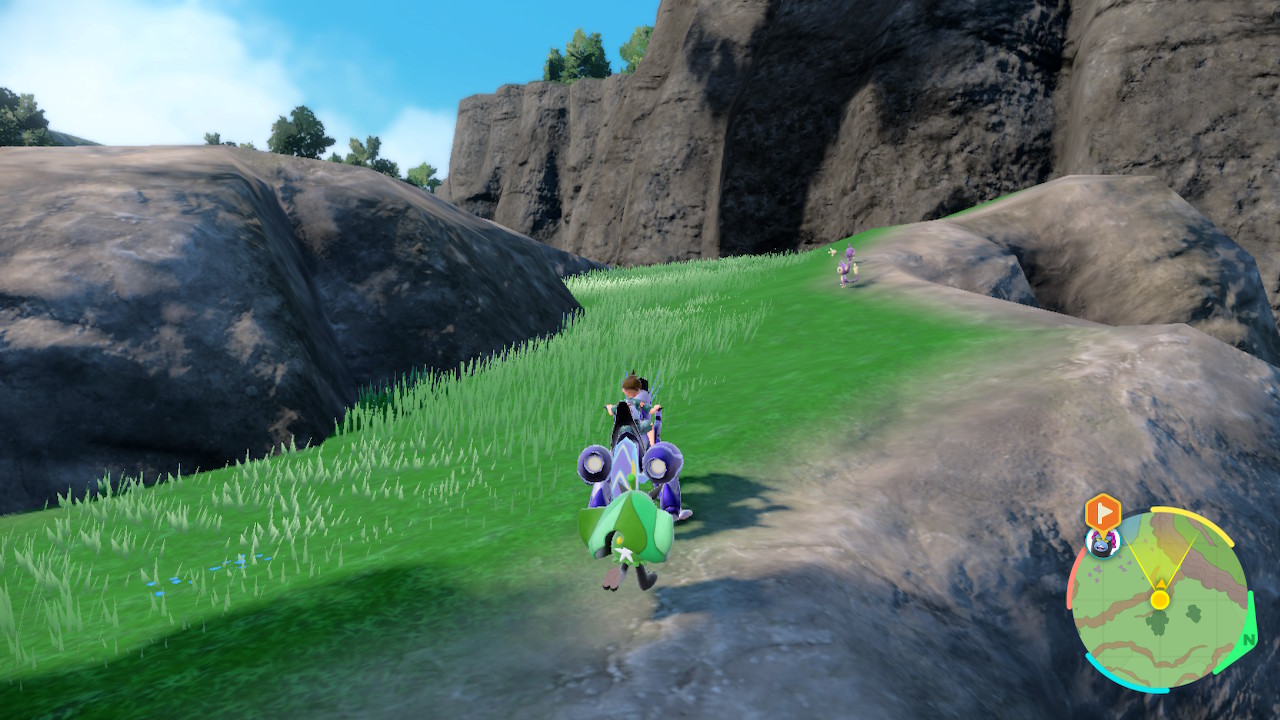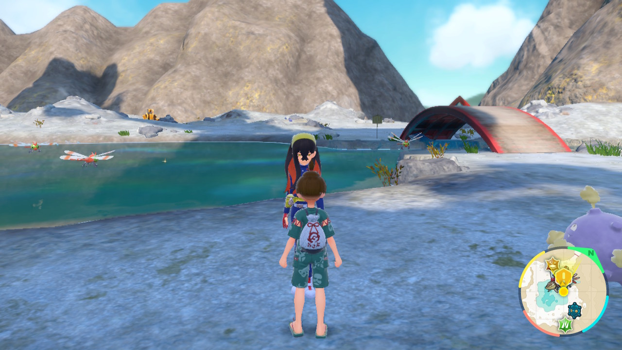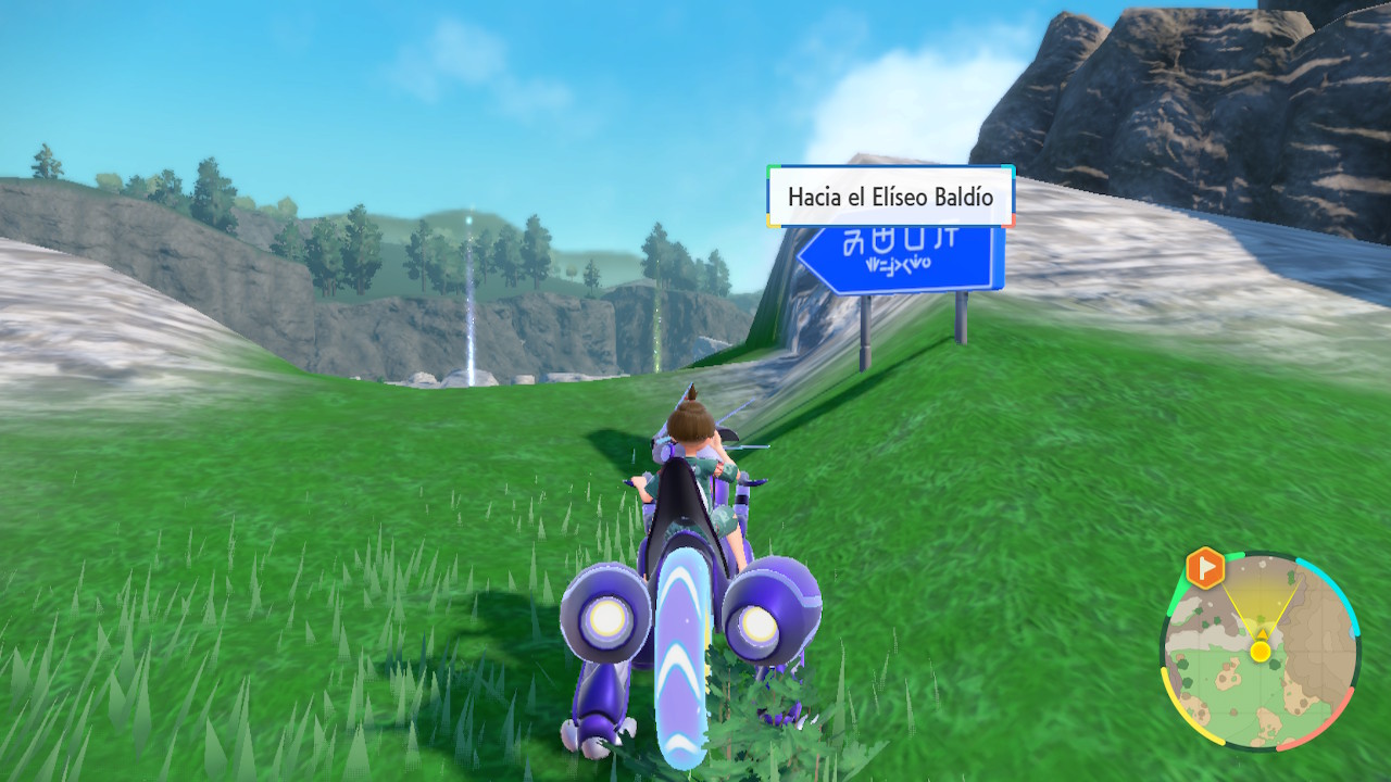 Ahora deberás dirigirte a Villa Versui a recabar información sobre Los compatrones, con el fin recuperar las máscaras robadas de Ogerpon. Vuela hasta el albergue y habrá una secuencia donde llegarán con Ogerpon hasta el puente que une la villa con la Senda Jarana (Reveler’s Road).