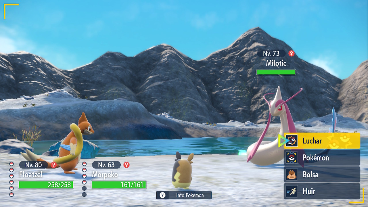 Milotic: Nv. ??? o Nv 73. No tendrás mayores problemas para derrotarlo, ya que Corin tiene un Morpeko Nv. ??? o Nv 63 con ataques superefectivos contra Milotic.