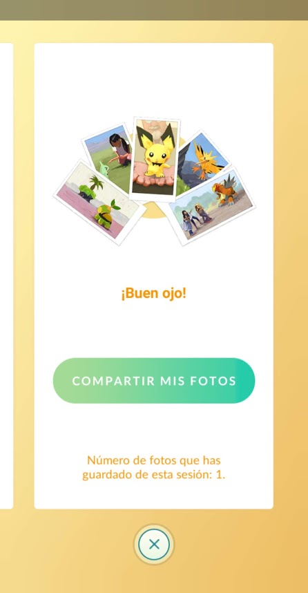 Con la cámara instantánea de GO puedes compartir con tus amigos todas las fotografías que le tomes a tus Pokémon. Lo único que debes hacer luego de tomar una fotografía, es ir hacia atrás con el botón que se encuentra en la esquina superior izquierda de la pantalla y luego podrás ver las fotos que has tomado.