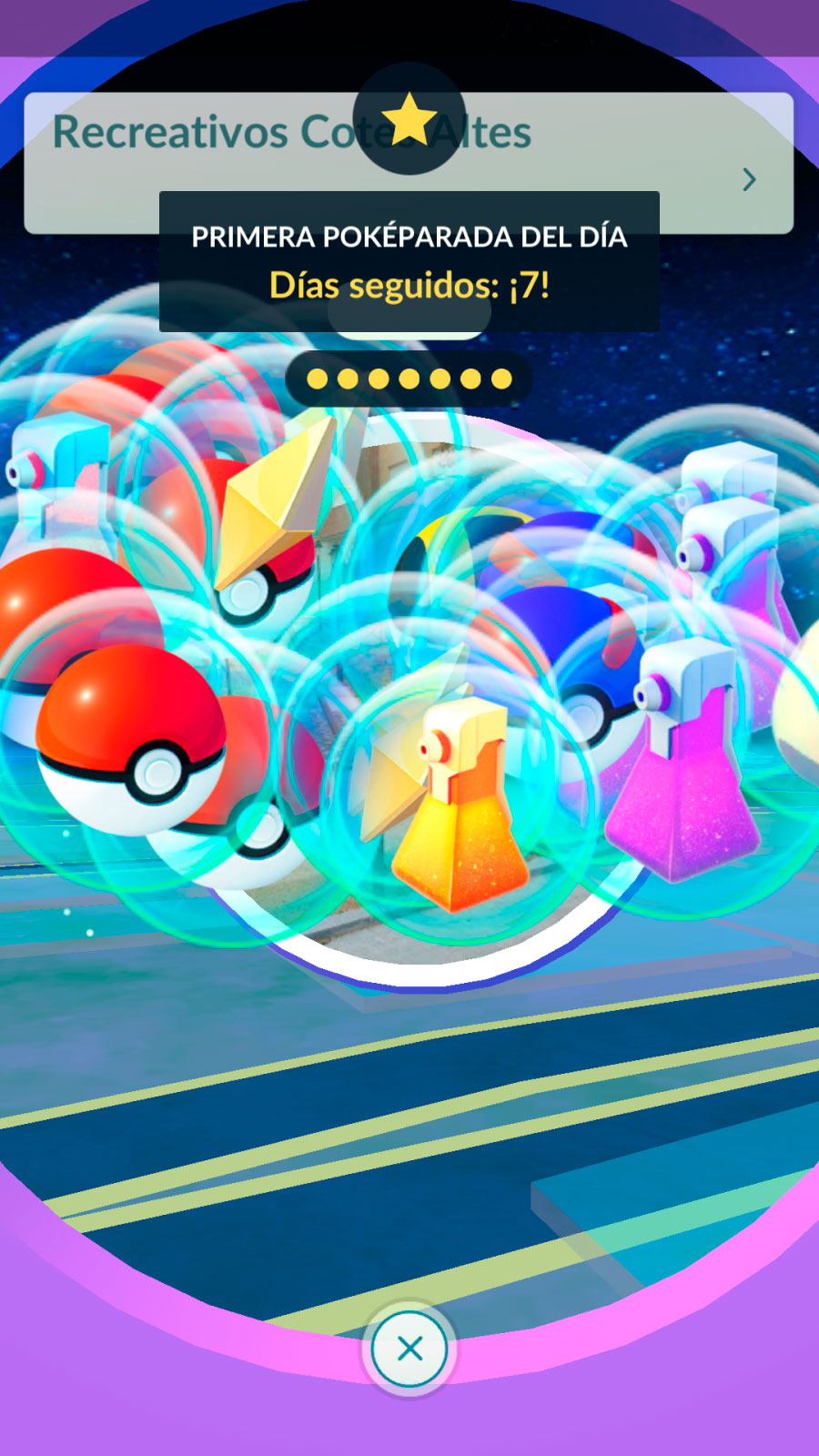 Si giras un fotodisco durante 7 días consecutivos sin romper la cadena, recibirás 2.500 XP y muchos objetos extra (luego de eso tendrás que volver a empezar). El séptimo día que actives la Poképarada recibirás también un objeto evolutivo (Escama Dragón, Roca del Rey, Revestimiento Metálico, Piedra Solar o Mejora).