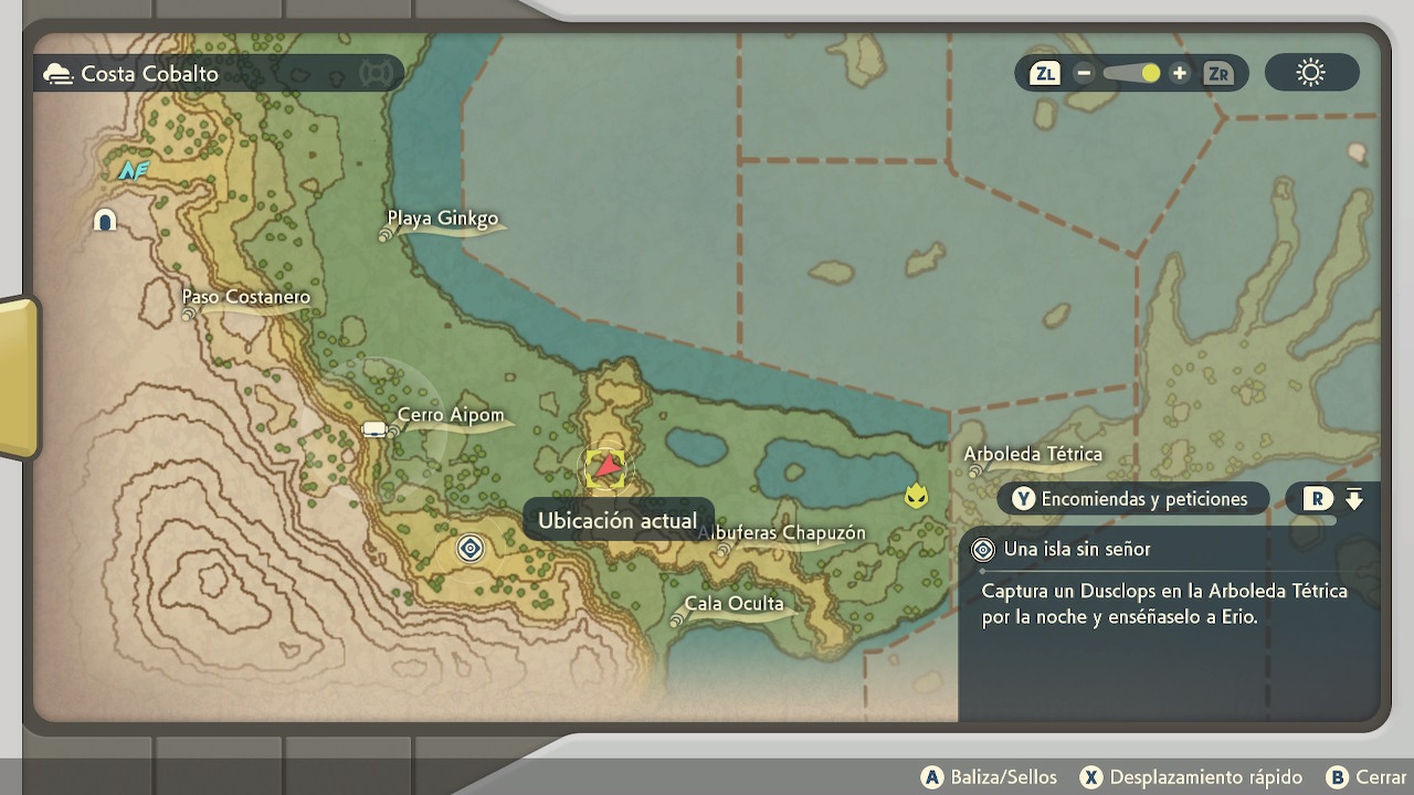 Esta petición la podrás aceptar de Nari, cerca de la zona de Cerro Aipom en Costa Cobalto. Después de hablar con ella deberás dirigirte a Mano de Arena (Sand’s Reach).
