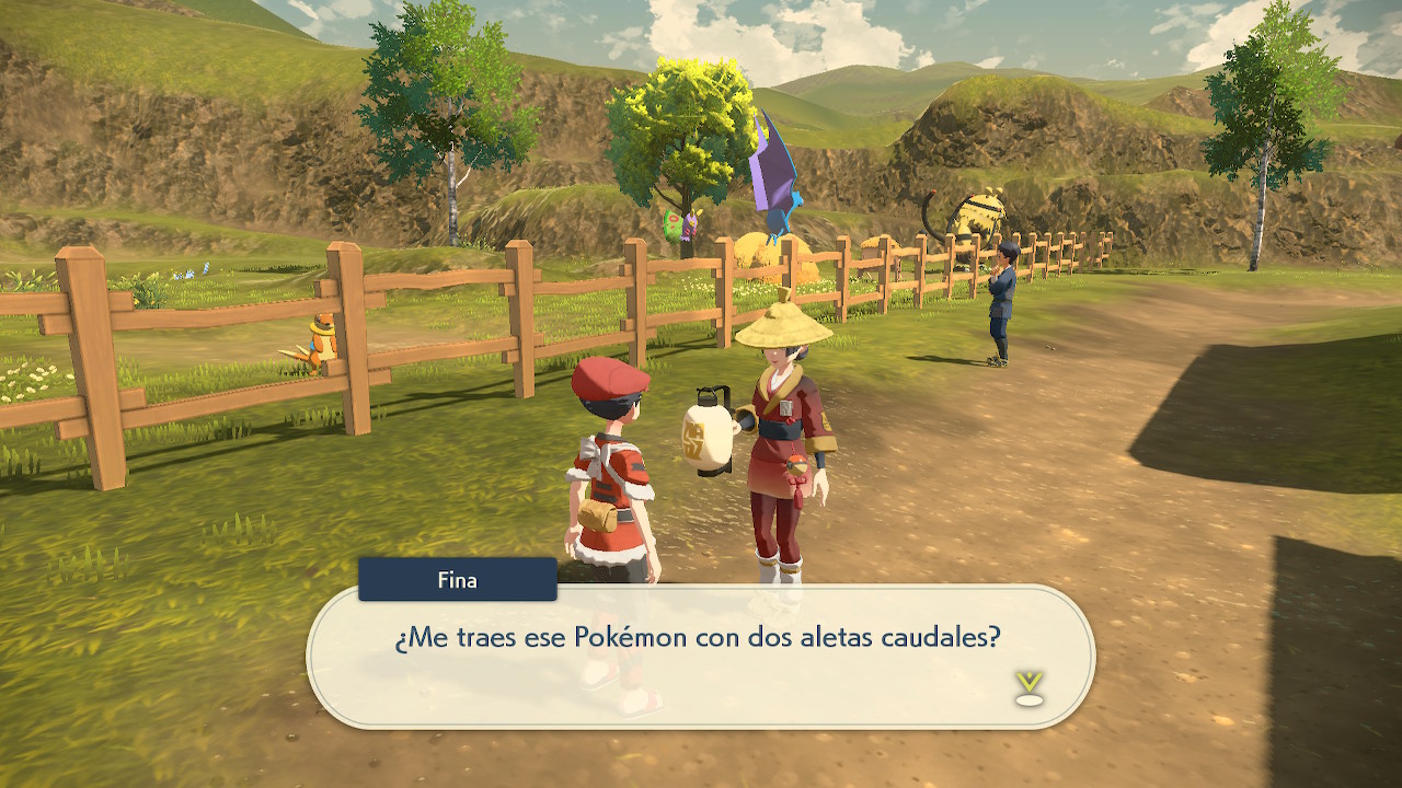 Esta petición te la encargará Fina cerca del Redil en Villa Jubileo. Te pedirá que busques al Pokémon con dos aletas caudales. Este Pokémon en cuestión es Finneon.