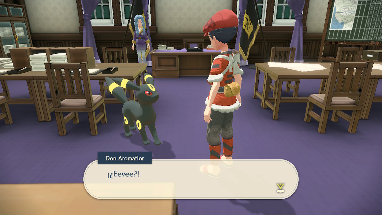 Don Aromaflor busca información acerca de la evolución de Eevee. Ve a hablar con él para tratar el asunto.