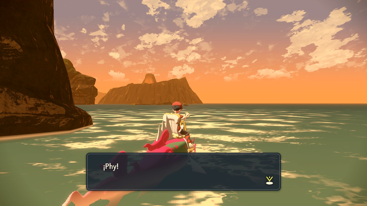 Cuando pases por los cuernos de piedra que salen del agua, leerás una pantalla de diálogo que dice ¡Phy!