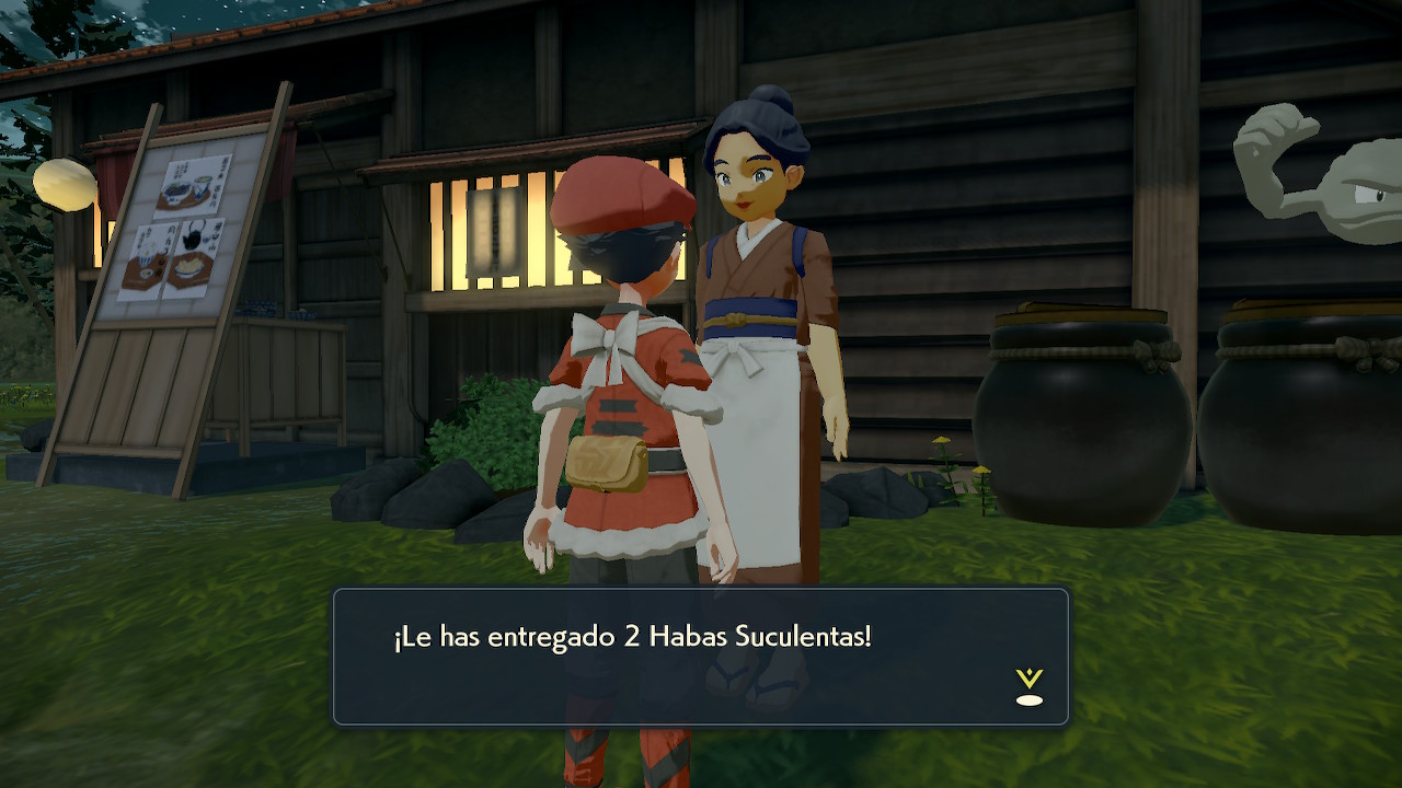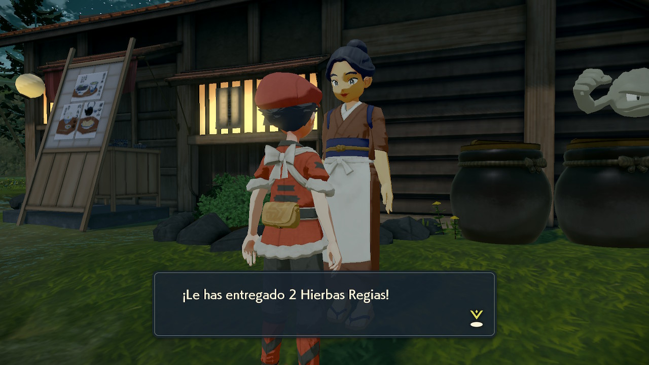 Esta petición te la encargará Eva cerca de la entrada de Villa Jubileo. Ella te dará las gracias por haberle entregado el Geodude en la petición anterior y te dirá que gracias a él ha dado con la receta perfecta de encurtidos.